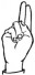 На ћирилици написано БЛАЖА ГОЧАНИН састоји се из 12 слова [?]. Исписано ћириличном једноручном азбуком за глувонеме: